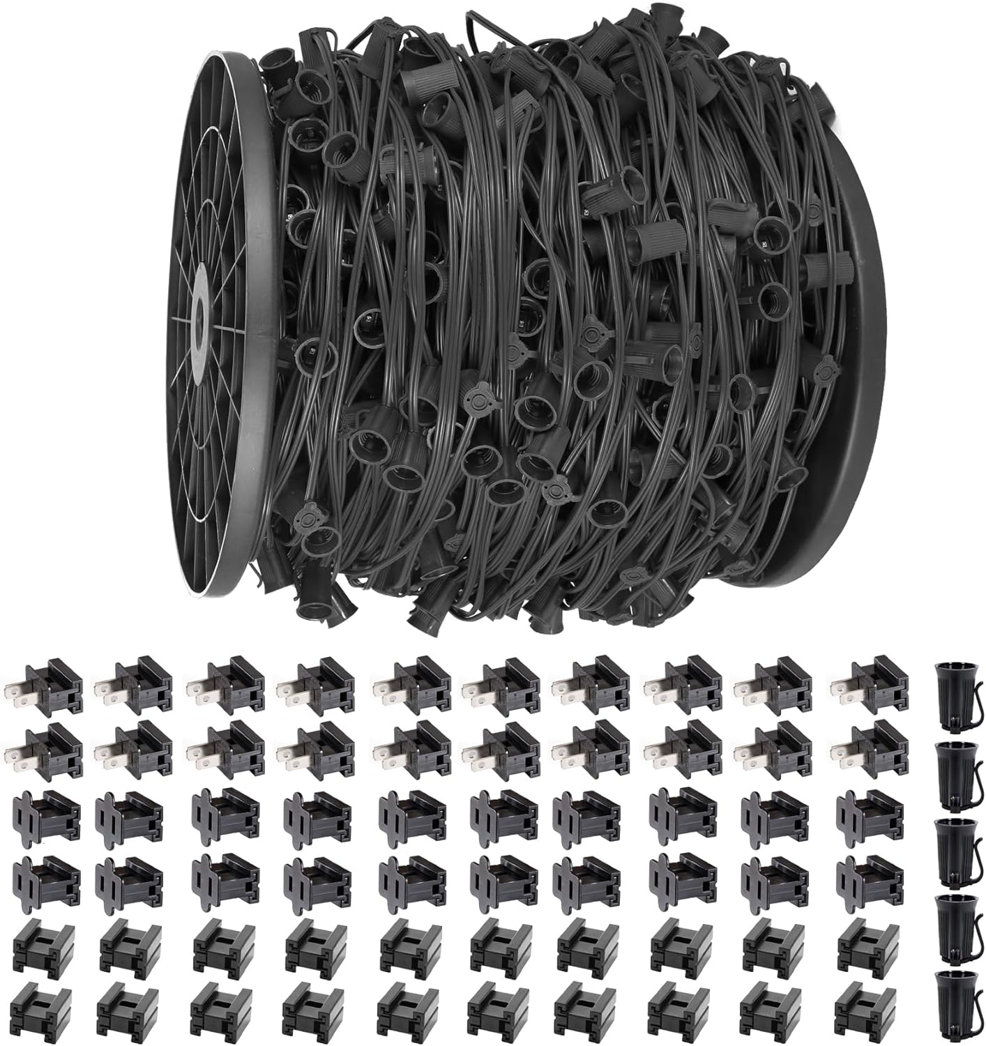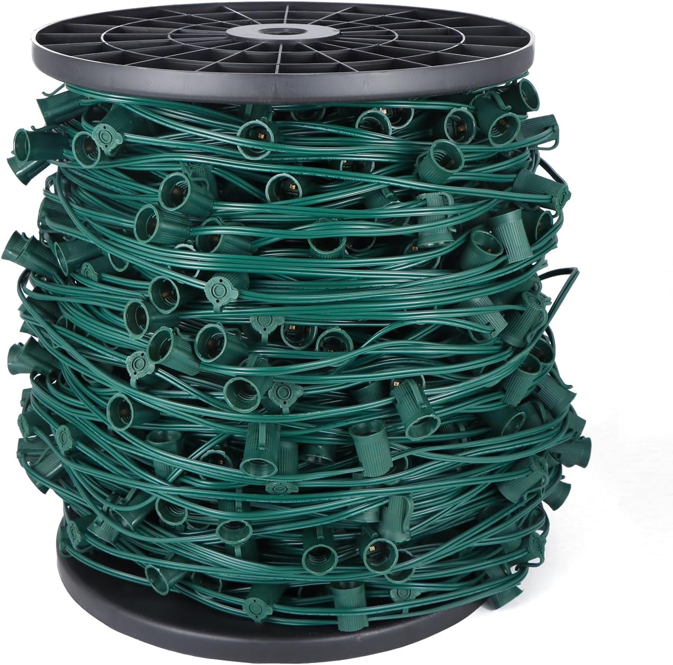 • Dimensions and specifications: The length of the c9 light strand is 100 feet with white wire.The 100' c9 socket wire contains a total of 100 Christmas light sockets