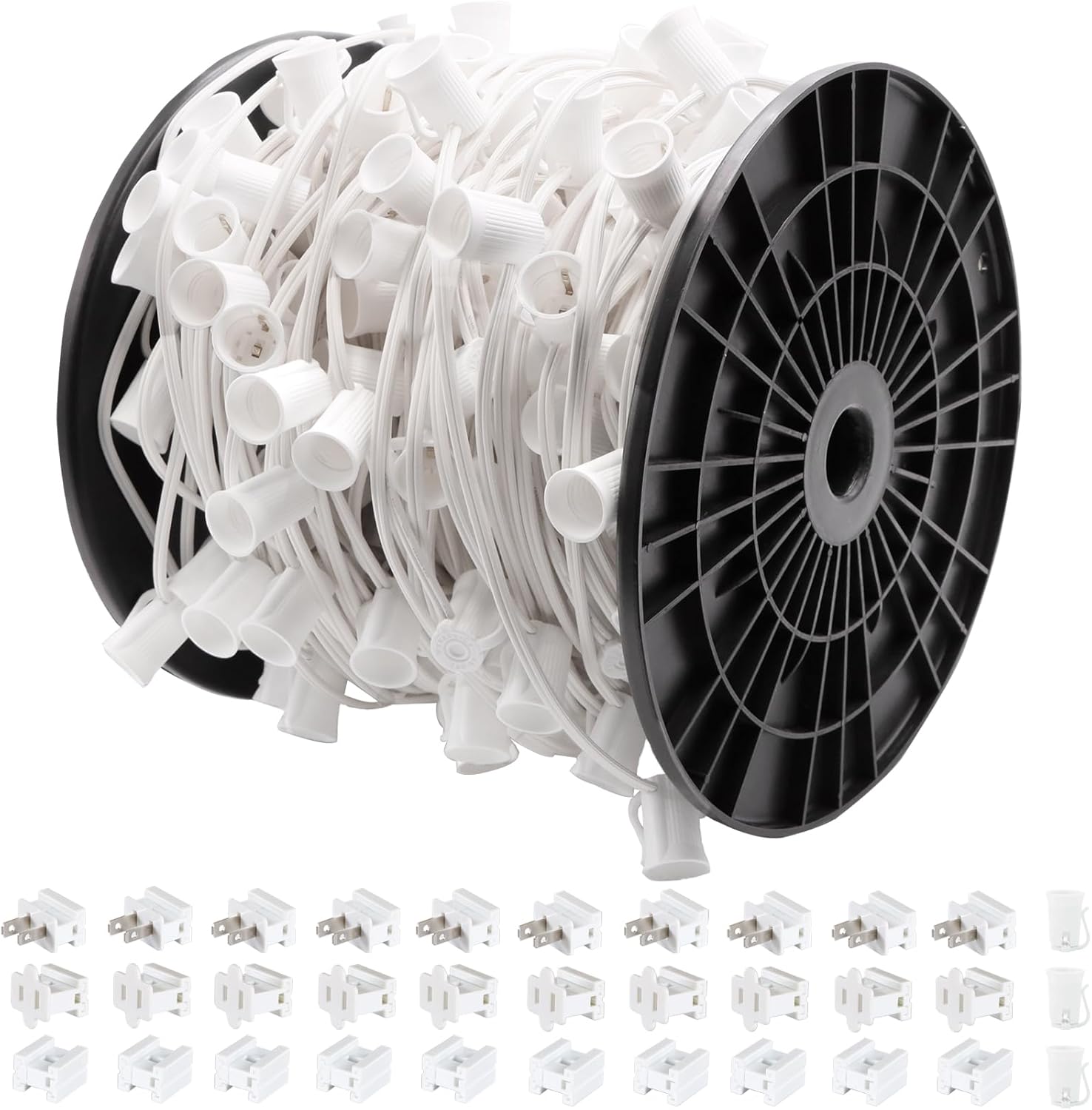 100FT C9 Light String Christmas Stringer, E17 Light Sockets 12" Spacing, C9 Stringer Set White Outdoor String Light Strand for Wedding Patio Event Lighting Decor, White Wire