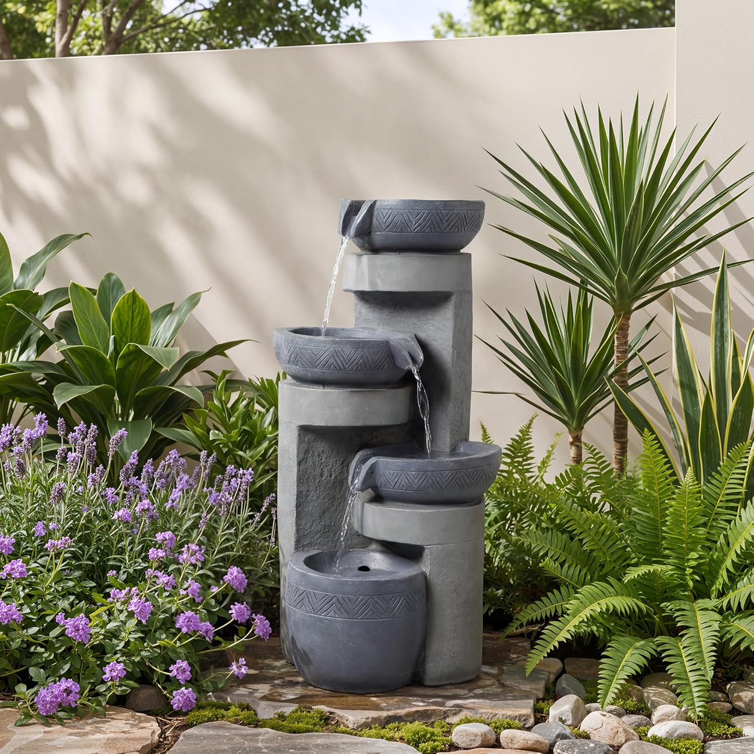 Elevate your outdoor space with the Anunweldo 28.3" Tall Outdoor Water Fountain, a stunning blend of natural charm and modern aesthetics. This exquisite water feature features a 4-tier cascading design, where water gently flows down from the top bowl to the lower ones, creating a soothing, tranquil ambiance that transforms your yard, backyard, patio, or deck into a peaceful retreat. Crafted with durability in mind for outdoor use, the fountain’s stacked bowls boast a sleek yet timeless look that complements any outdoor décor style—whether you prefer a cozy cottage vibe, a minimalist modern setup, or a lush tropical oasis. The 28.3" height strikes the perfect balance, making it a noticeable focal point without overwhelming your space.