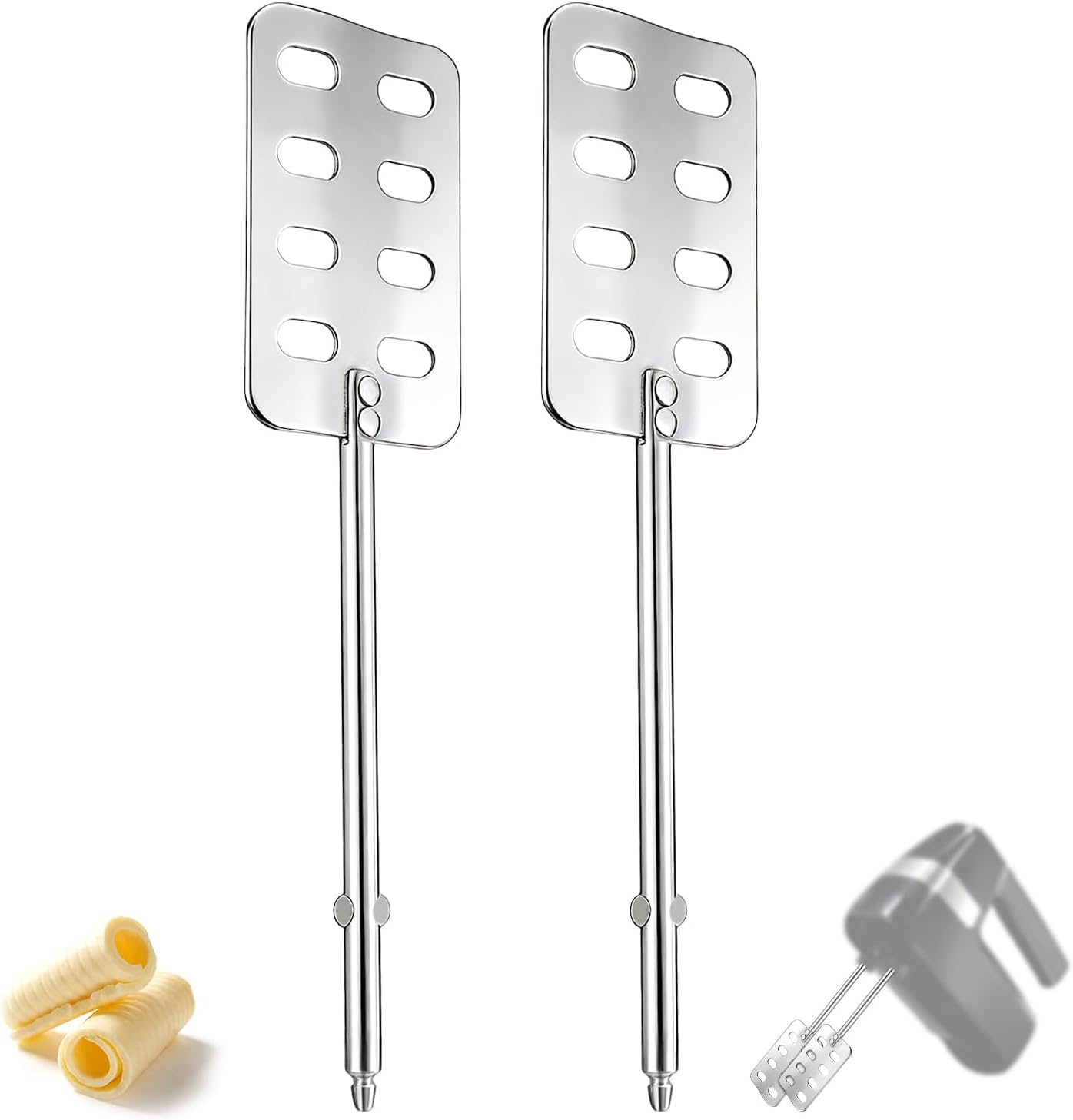Specification: Color: silver Material: 304 stainless steel Product Size: 7.28x1.77in/18.5x4.5cm Package details: 2 x hand mixer beaters attachments Note: Due to manual measurement, the size and weight may have a certain error. Due to the difference between different monitors, there may be a slight color difference existed.