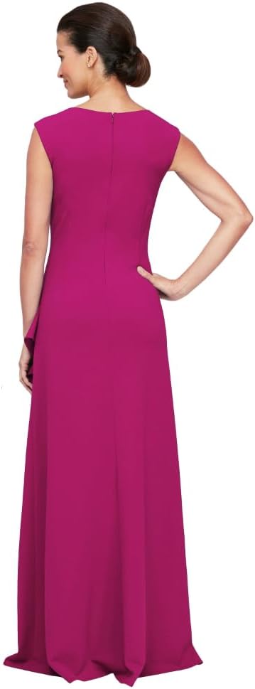 Embrace modern elegance with the Alex Evenings Women's Long Cascade Ruffle Sleeveless Dress. This stunning gown, made from buttery crepe fabric, is designed to flatter every inch of you, offering a sleek and classic silhouette. The cascade ruffle skirt detail adds a touch of modern sophistication, making it the perfect choice for wedding receptions, formal events, or galas. The chic cutaway neckline enhances the overall design, ensuring you exude grace and style at any event. This dress is the epitome of timeless beauty and contemporary charm.