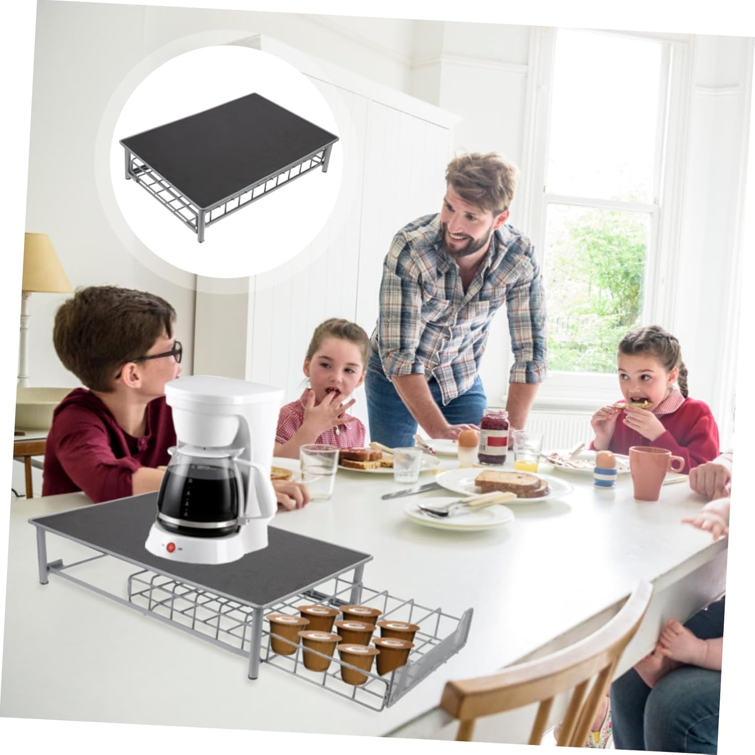 Package List 1 x Coffee Capsule Holder Features -Material: Iron -Size: 40x28x9.5cm/15.7x11x3.7inch -Color: Grey - Our coffee capsule holder is elegant and lightweight, but sturdy at same time - It looks great next to any Espresso machine at home, in your office, or shop - Noise reduction design, very convenient and practical - Drawer type design, very space saving and practical - It takes up very little space on your kitchen or counter while holding many coffee Goods InformationThis drawer type coffee holder offers a sleek and stylish solution to organize your coffee efficiently. Made from iron with modern grey color, it holds up to 60 capsules while occupying minimal counter space. Its compact design makes it perfect for home kitchens, office breakrooms, or cafes where space is limited but coffee variety matters. The smooth, noise-reducing drawer allows easy access to your favorite coffee without distraction. This portable organizer stands beside espresso machines, combining practicality elegant appearance. Whether preparing a serving guests, it enhances your coffee station with organized convenience and refined style From Amosfun was inspired by need for elegant yet practical coffee storage modern lifestyles. Valuing craftsmanship and thoughtful design, our coffee holders transform everyday into organized, enjoyable experiences. Embrace simplicity and style with Amosfun