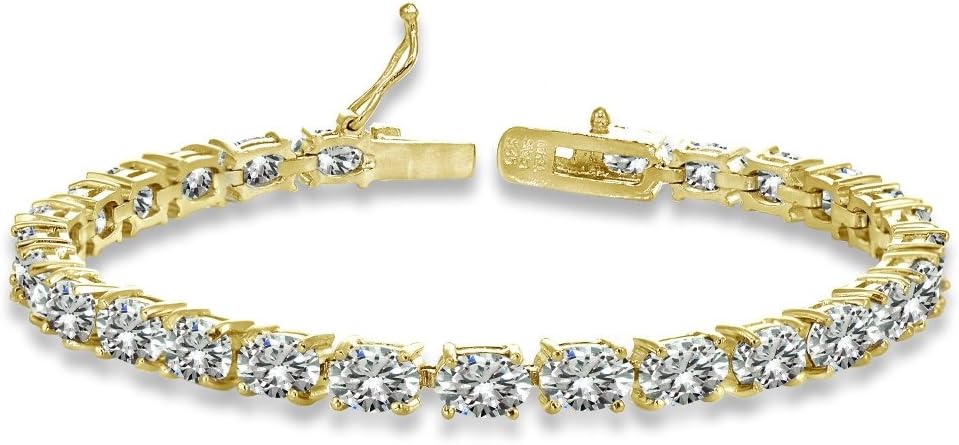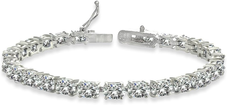 Sterling Silver Genuine, Created or Simulated Gemstone Oval-cut Tennis Bracelet for Women with Gift Box, Color options.