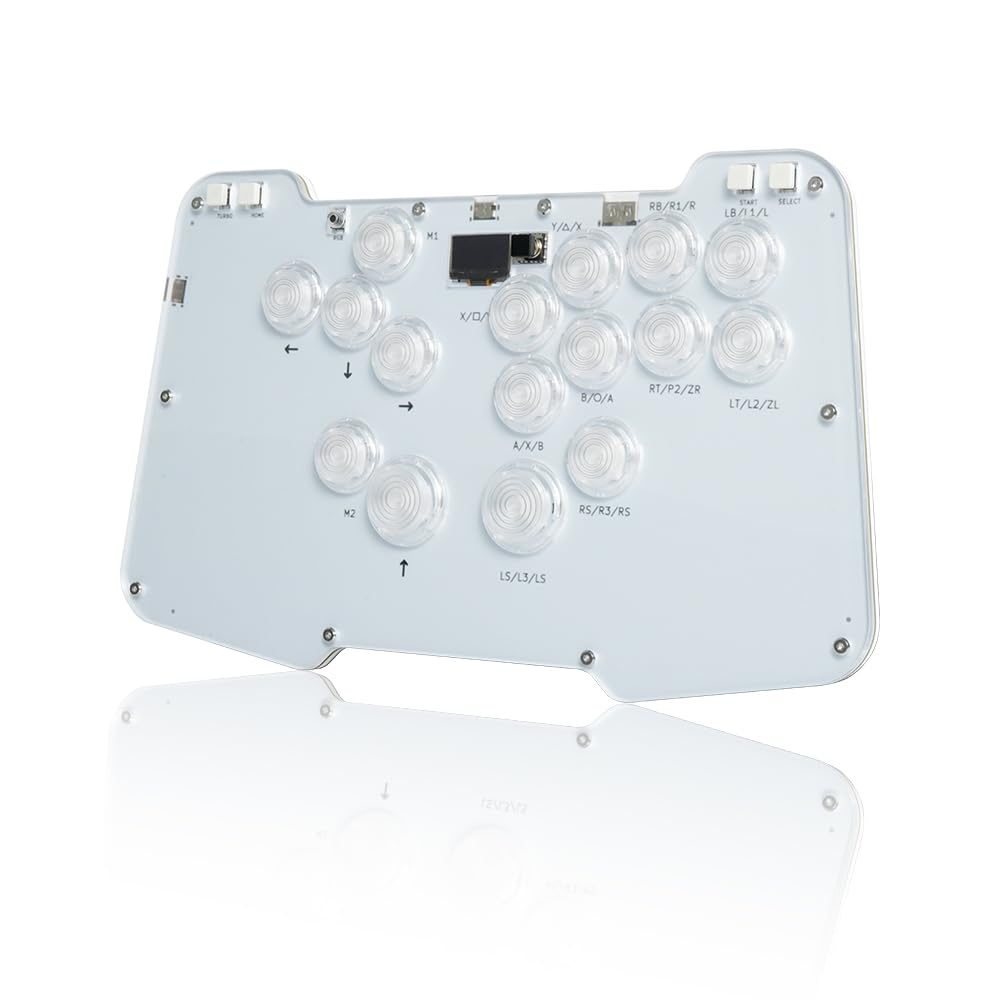 • Custom RGB & OLED — This is a transparent acrylic material with RGB lighting effect, an enlarged style arcade keyboard with 16 buttons, providing 5 Backlit Modes and 14 Different Colors. The OLED display supports DIY startup screen, allowing players to easily customize skin patterns. It not only provides a comfortable feel but also allows you to enjoy fighting games.