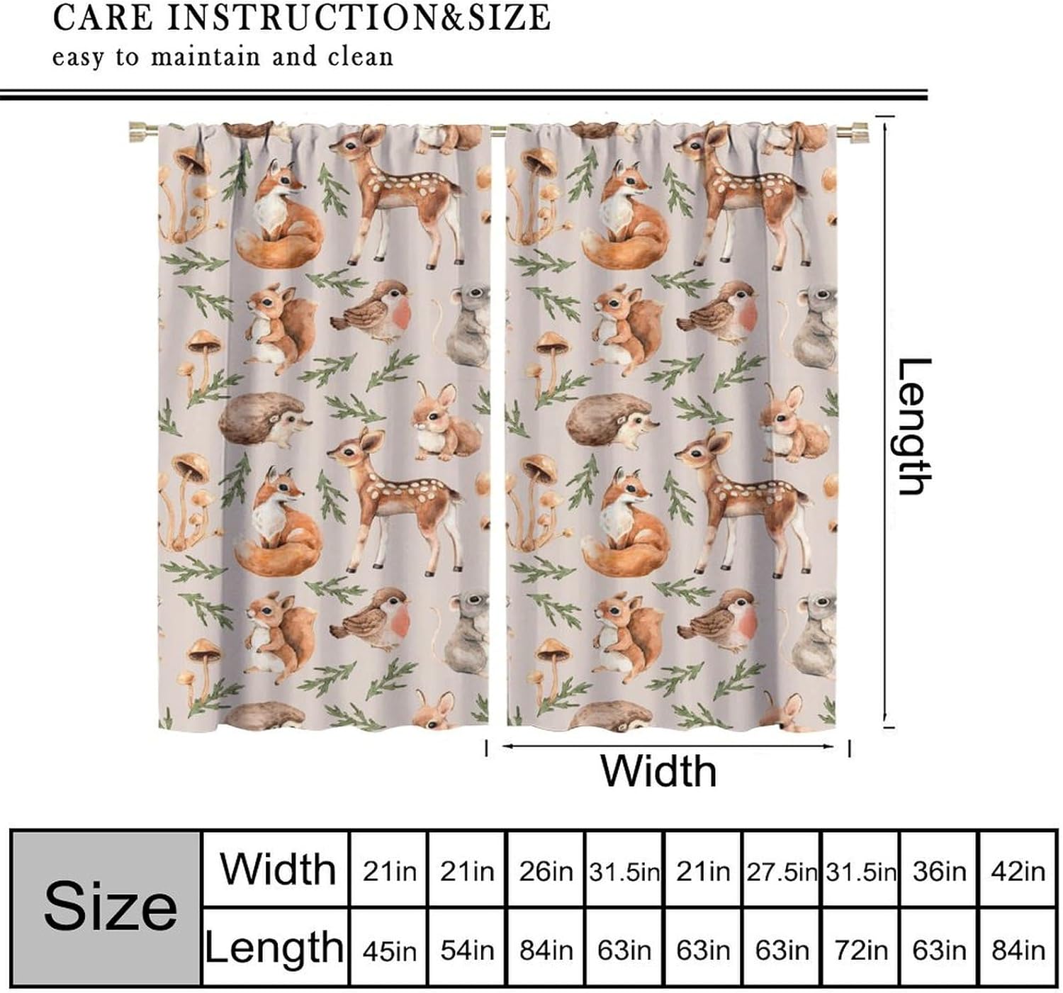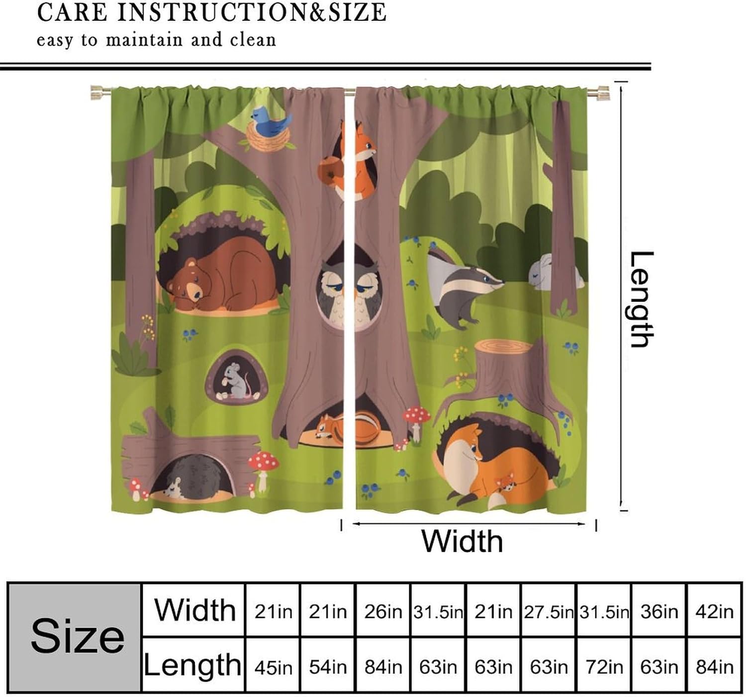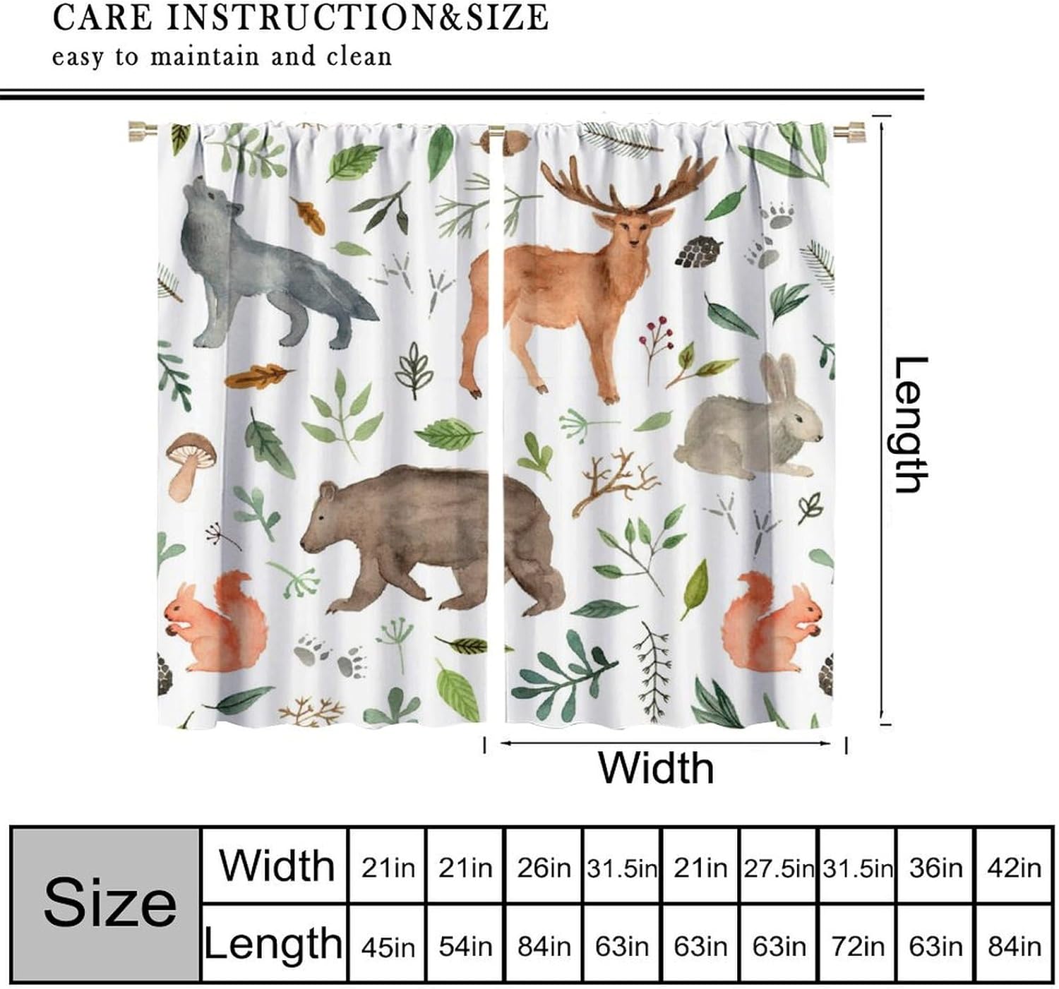 Package included:2 panels per package.Size:One panel measures 21" (W) x 45" (L). The overall size is 42"(W) x 45"(L).One panel piece measures 21" (W) x 54" (L). The overall size is 42"(W) x 54"(L).One panel piece measures 21" (W) x 63" (L). The overall size is 42"(W) x 63"(L).One panel piece measures 27.5" (W) x 63" (L). The overall size is 55" ( W ) x 63" ( L ).One panel piece measures 26" (W) x 84" (L). The overall size is 52" (W) x 84" (L).One panel piece measures 31.5" (W) x 63" (L). The overall size is 63" (W) x 63" (L).One panel piece measures 36" (W) x 63" (L). The overall size is 72" (W) x 63" (L).One panel piece measures 31.5" (W) x 72" (L). The overall size is 63" (w) x 72" (L).One panel piece measures 42" (W) x 84" (L). , The overall size is 84" (W) x 84" (L).About the material:1. Made of fiber polyester fabric.2. High color fastness, no fading even after long term use.3. No chemical coating, no odor, healthier and safer for people, especially for babies and children.About the function.1. It can block out 70%-90% of light and can protect privacy by blocking light or darkening the room.2. It is very suitable for bedroom, living room, kitchen, cafe, office, closet, door, bathroom, dining room, dormitory, nursery, outdoor patio, etc.3. It is also one of the best gifts for family, friends, relatives or yourself.Warm tips:1. Machine washable in cold water.2. The pattern is only on one side, the other side is white.3. Due to manual measurement, please allow 1-2 cm difference.Our service:We focus on customer satisfaction. If you have any questions or problems, please contact us by email, we will reply within 24 hours and provide a satisfactory solution.