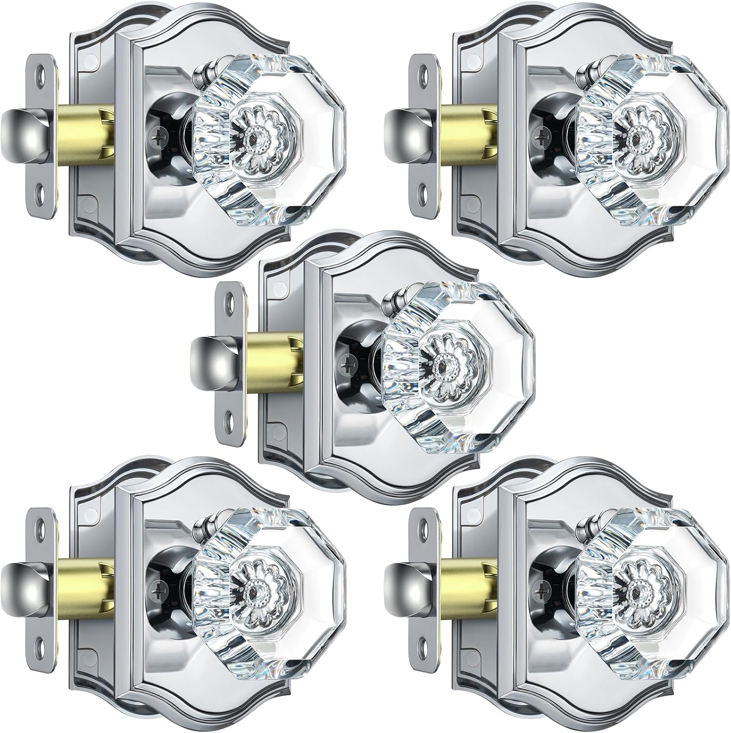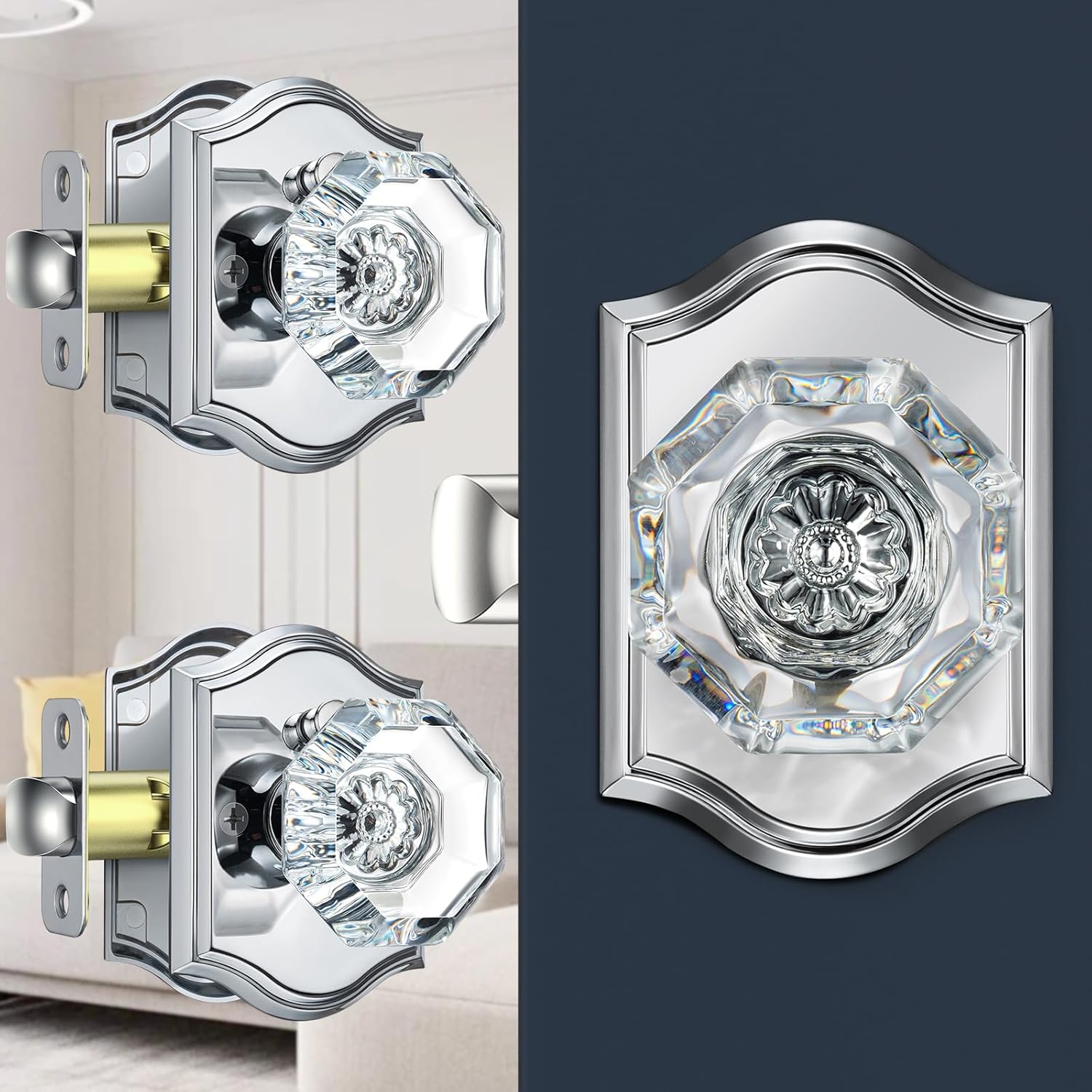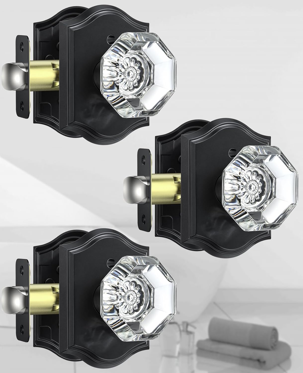 | Included Components | 3 pack crystal glass knobs(interior & exterior knob), adjustable latch with undetachable plate, spindle, plastic cover, strike plate, hex key, screws, installing instruction |