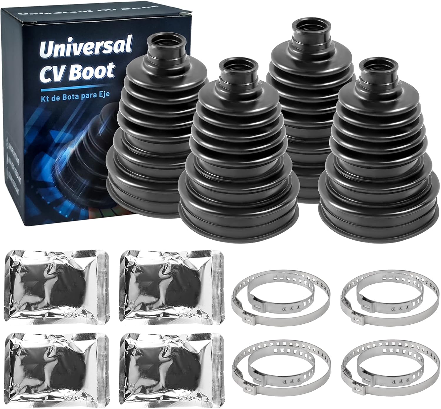 CVS18 CV Boot Split Constant Velocity Joint Gaiter Boot Replacement Kit, Includes 2 Stainless Steel CV Boot Clamp, Black