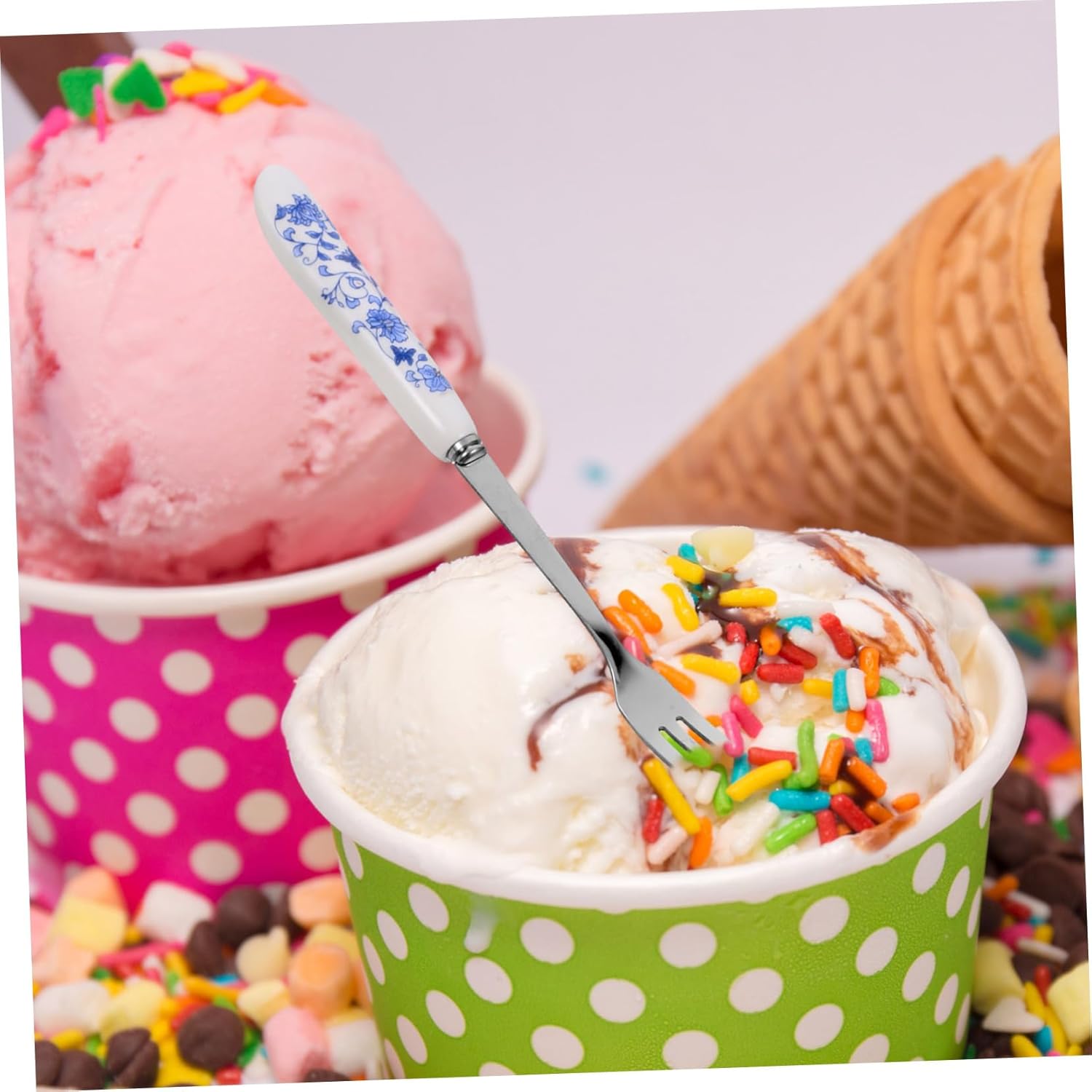 Package List 6 x ForksFeatures - Size: 15.50X1.50X1.00cm/6.09X0.59X0 party small fork.-Color:As Shown dessert fork-Material:Stainless steel, ceramic stainless steel small fork-These food forks are decorative and high-end, showing your personality and taste cocktail forks.-Compact and lightweight, easy to store, these food picks are not taking up any space stainless steel dessert fork.- for home, coffee shop, bar, milk tea shop, restaurant, hotel, home, and party use delicate dessert fork.-Smooth surface without burrs, these fruit forks are easy to clean without hurting your hands cake fork.-Great for eating fruit, salad, cake, dessert, sweets, cheese cube, meatball, and other food stainless steel cake fork.Goods Informationstainless steel silverware Strong and durable, these food forks are not easy to deform.fruit forks These fruit forks are multi-function and practical, which can be used for birthdays, parties or families.Coffee Spoons These have exquisite appearance and simple design and stainless steel, ceramic material