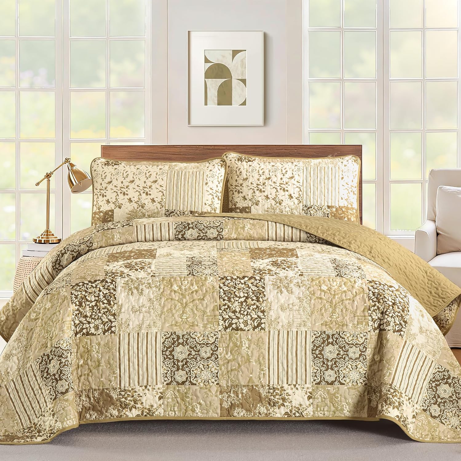 • 【High Quailty Material】This ultra comfortable quilt bedding set is soft to the touch and light as a feather. 3-layer design and tight stitching make this coverlet a caring and long-time companion to provide softness and defend against cold.