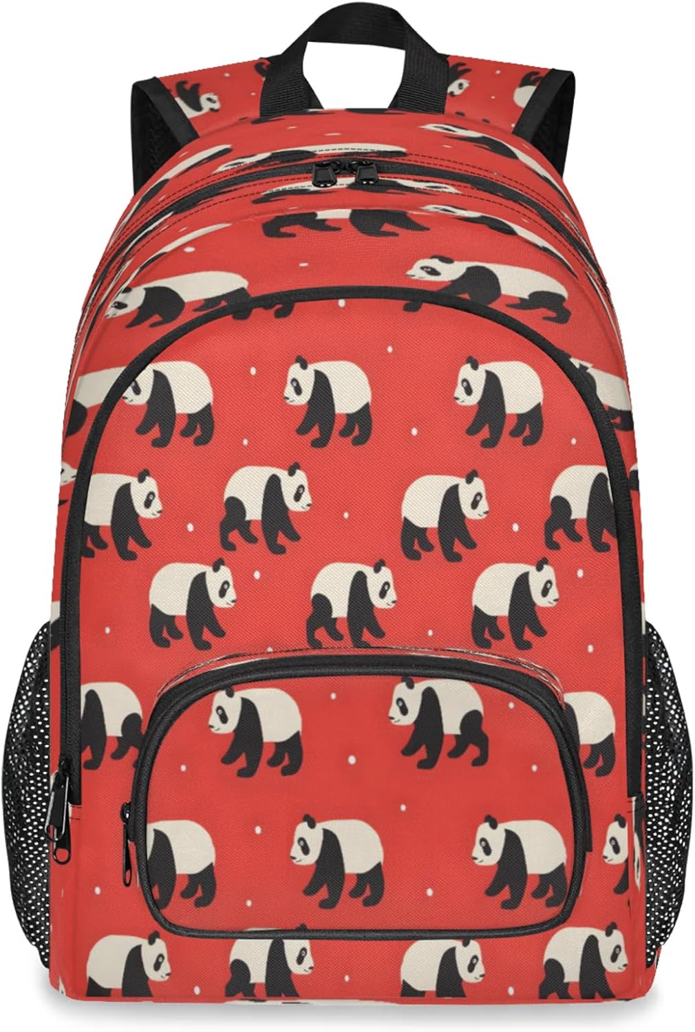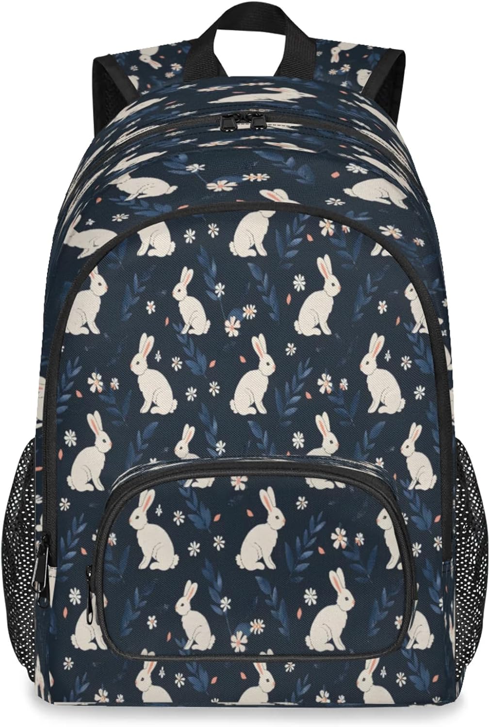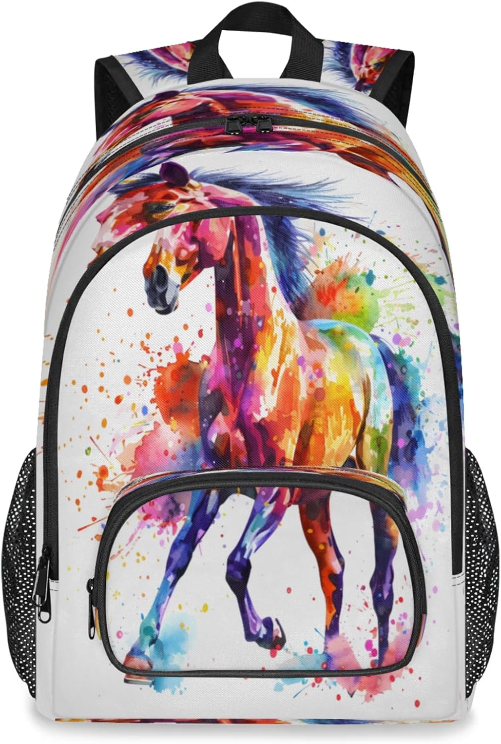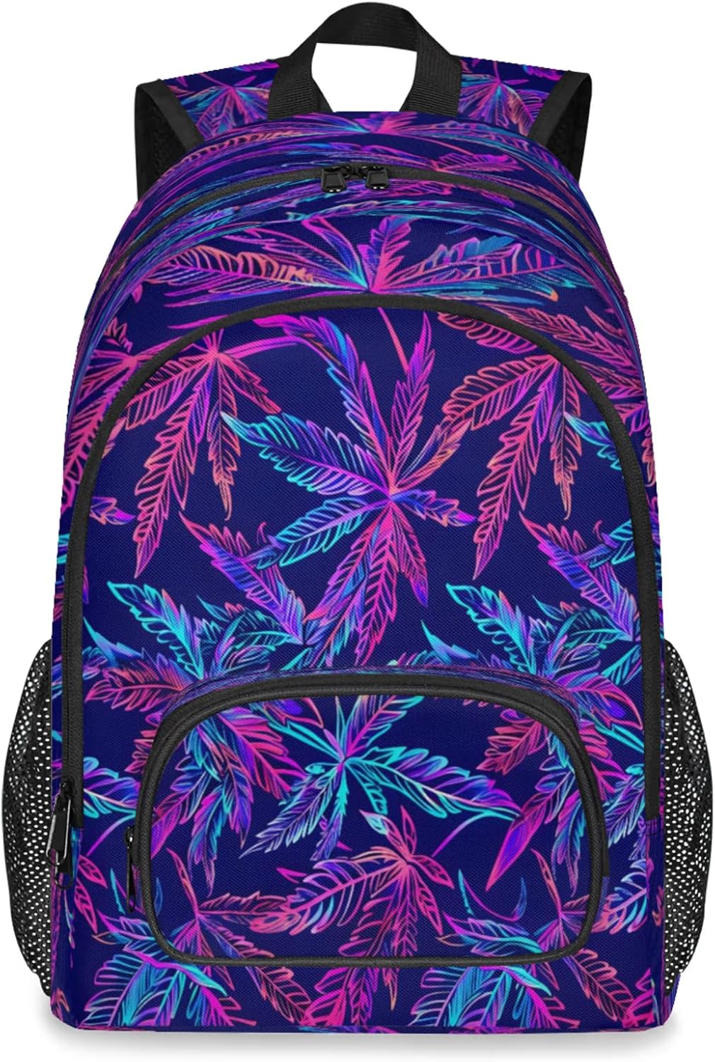Features:Size: 12.2(L) x 7.6(W) x 18.3(H)Material: Composite Twill FabricLarge capacity and spacious compartments:Has 9 pockets: 1 spacious main compartment with 1 smallzippered pocket and 1 laptop sleeve inside; 1 large front zippered compartment with 1 small zipperedpocket and 1 small divider; 1 front pocket; 2 side mesh pockets;Multi-functional pockets for various small items, solving theproblem of loss and clutter.The main pocket can hold laptop/tablet/iPad.Design:Simple and stylish graphic print design.Non-slip chest buckle, S shaped adjustable shoulder straps.It is a great value gift for your family and friends,suitable for any group of people.Warranty:Hand wash only. Not machine washable. Air dry naturally afterwashing.Please do not bleach. Do not scrub the backpack hard with abrush or anything else.