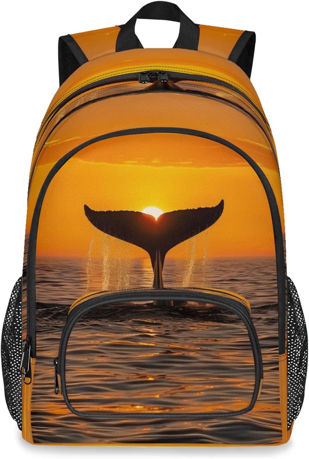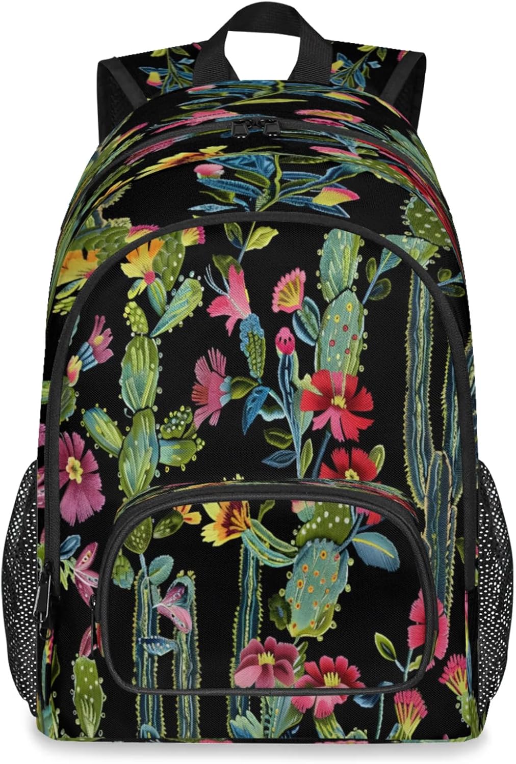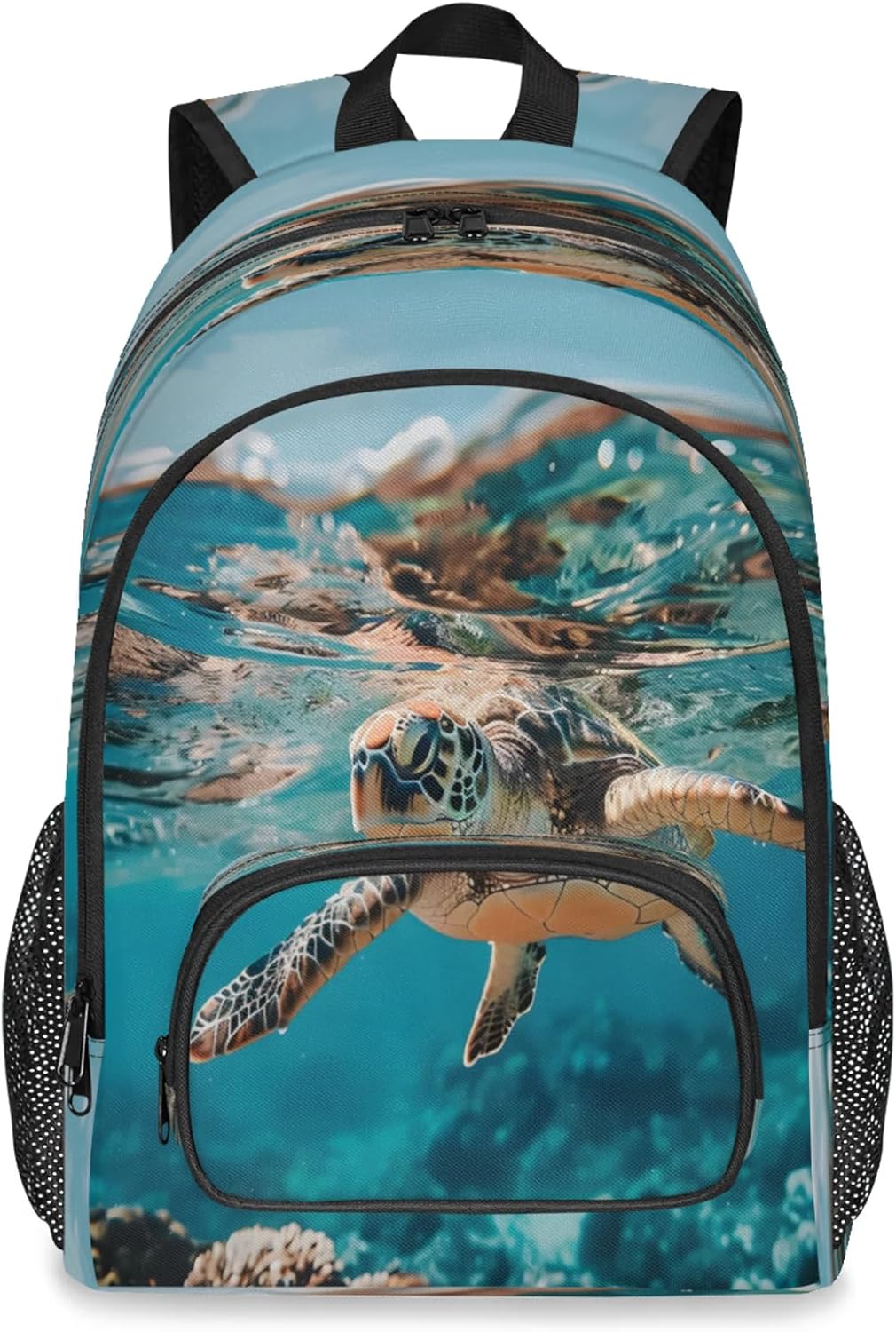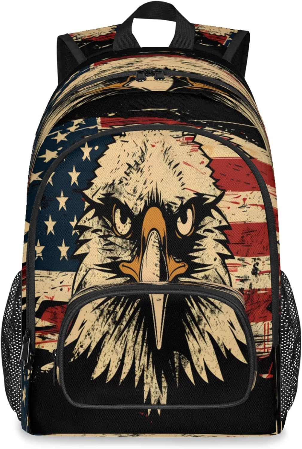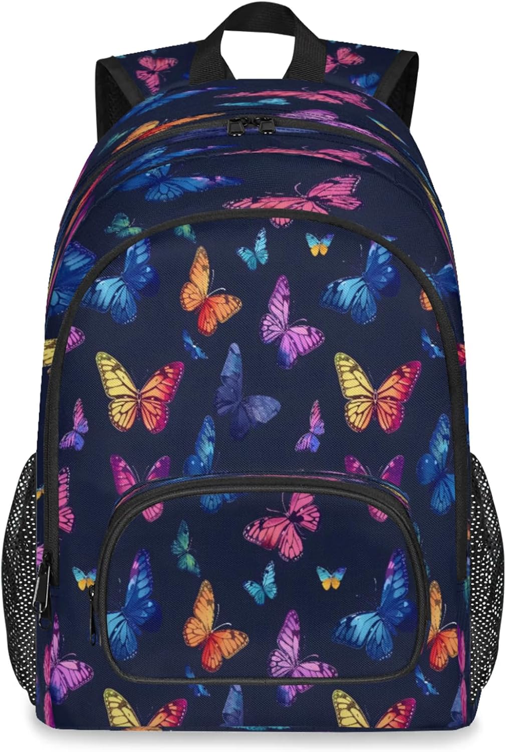 Features:Size: 12.2(L) x 7.6(W) x 18.3(H)Material: Composite Twill FabricLarge capacity and spacious compartments:Has 9 pockets: 1 spacious main compartment with 1 smallzippered pocket and 1 laptop sleeve inside; 1 large front zippered compartment with 1 small zipperedpocket and 1 small divider; 1 front pocket; 2 side mesh pockets;Multi-functional pockets for various small items, solving theproblem of loss and clutter.The main pocket can hold laptop/tablet/iPad.Design:Simple and stylish graphic print design.Non-slip chest buckle, S shaped adjustable shoulder straps.It is a great value gift for your family and friends,suitable for any group of people.Warranty:Hand wash only. Not machine washable. Air dry naturally afterwashing.Please do not bleach. Do not scrub the backpack hard with abrush or anything else.