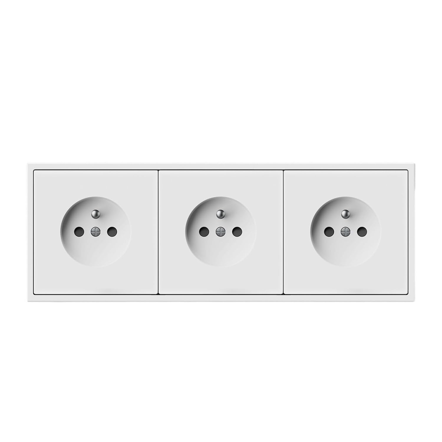 French Standard Single Wall Socket Double Electrical Outlets Wall Power Socket for France White Black Plastic Frame 16A(Single Socket Gold)