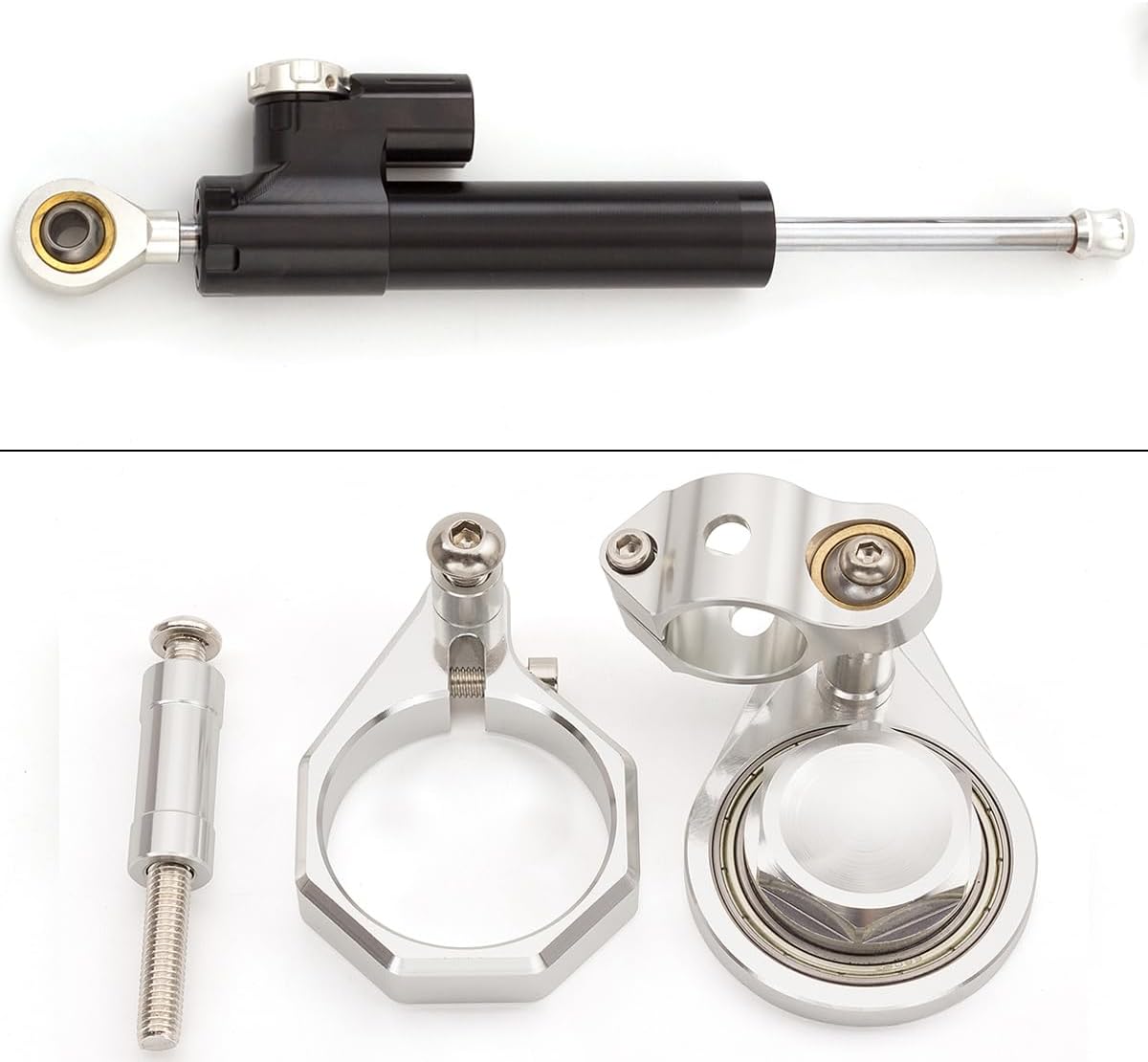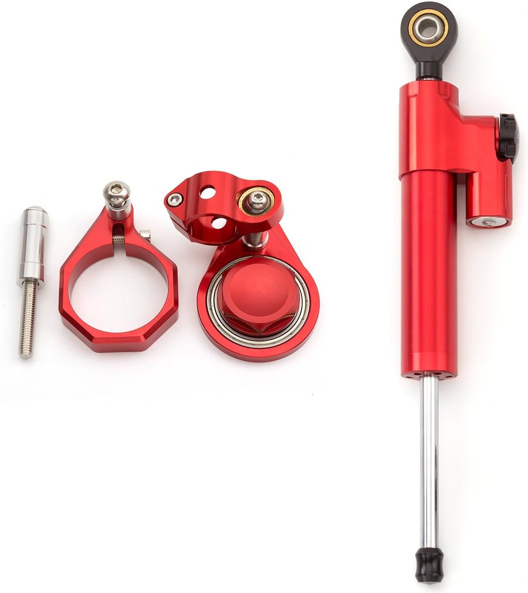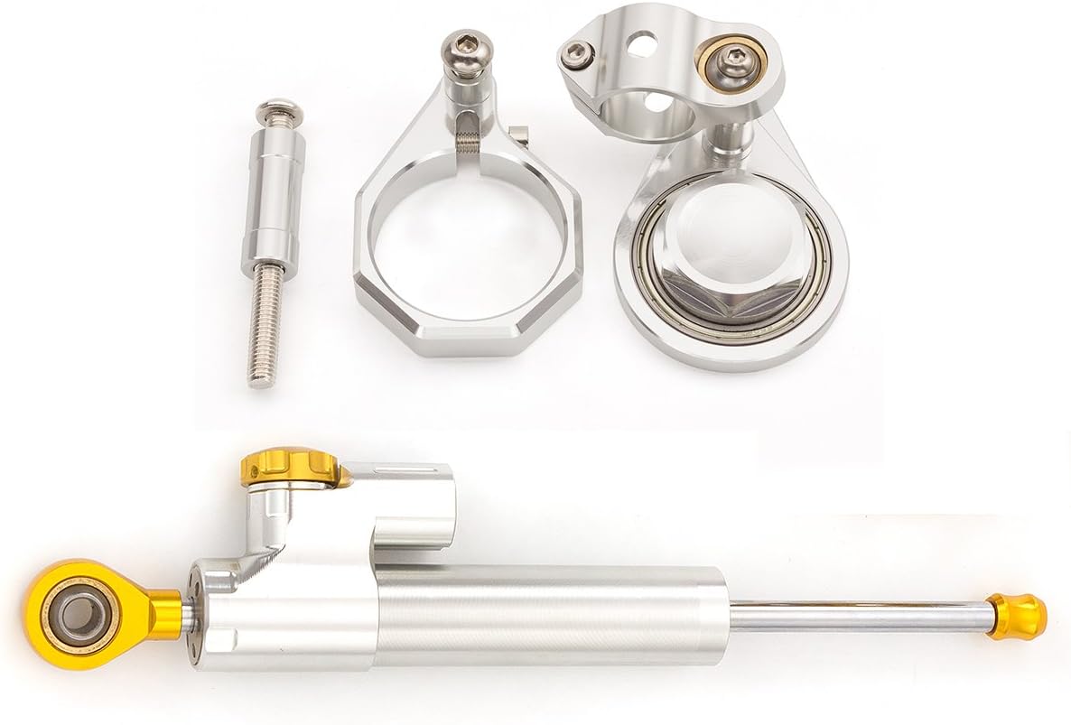 Fitment: for GSXR 600 750 2006-2010 Feature: 100 % brand new Material:T6061-T6 Aluminum (High Quality Material, Light grade & Light-weight) Finish: CNC & Anodized (durable and not easy to fade) Color : Show as pictures If you need other colour,please leave me a note after payment, thanks! Weight: 1 LB Others: Perfect fit and no modification is needed, No installation instructions Extraordinary advantages: 1.His risk is minimal. High stability 2.The dampers are fully adjustable and can be adjusted in 22 positions so there will be a position for every rider 3.The twin-tube clamp ensures that the clamping force of the tube clamp does not obstruct the piston 4.Nitrogen pressurised heat expansion reservoir prevents the forming of air bubbles 5.Mounting kits went through countless tests through any riding conditions Package Included: 1x Adjustable Steering Damper & Stabilizer Mounting Kit Full Set Note: 1.After installation, turn the head to the very right and very left to check whether there is enough room for the activity of steering damper or not 2.Check if the steering damper and its kit reach the motorbike or oil tank his kind of risk to a bare minimum. Tank slappers and vibrations are intercepted by the damper About after-sales service: Provide three months free warranty We provide high quality products and best service to each customer Everyone, If you have any questions, please do feel free to connect with us