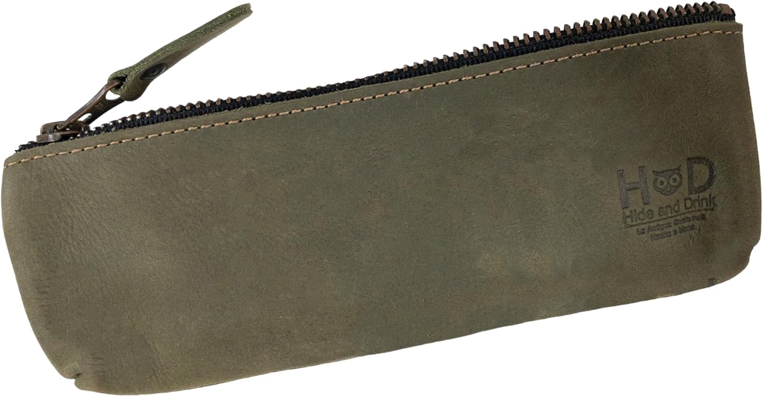 Hide & Drink, Rectangular Pencil Case, Pen & Marker Pouch for Men and Women, Flat Zippered Holder, Classic Style for Artists, Full Grain Leather, Handmade, Sangria