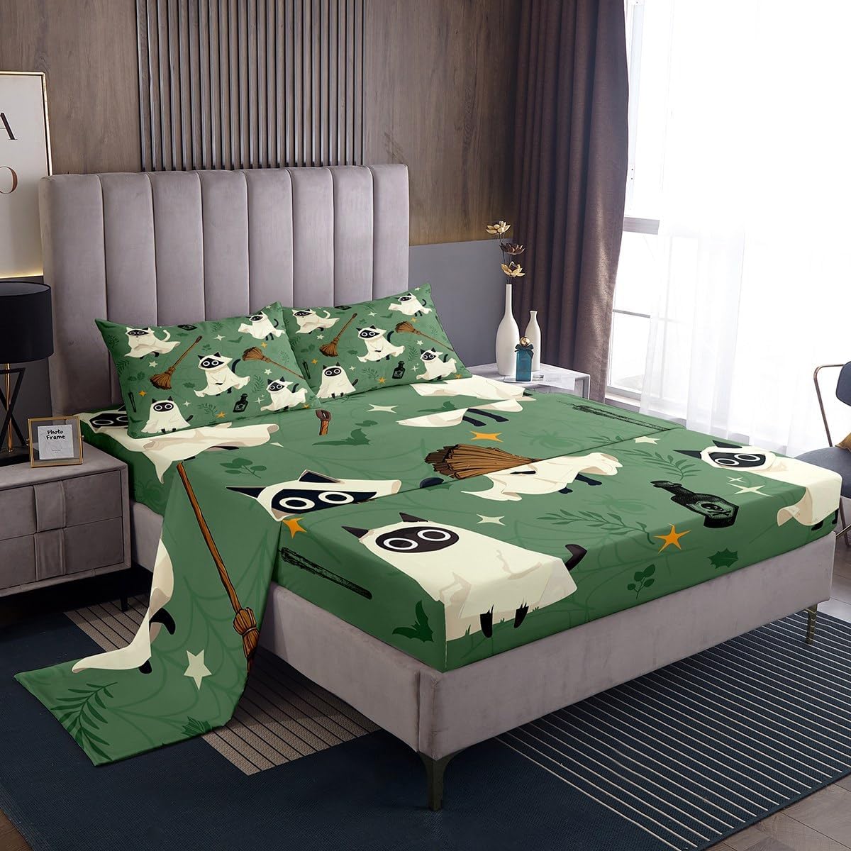 Our bed sheet is made of polyester fabric, lightweight and soft; stylish design is very suitable as room decoration for boys and girls; keep warm in winter and cool in summer; create a comfortable sleeping environment to make you fall asleep all night Range of size 1 twin fitted sheet 39 inch x 75 inch x 16 inch and 1 twin flat sheet 66 inch x 96 inch and 1 standard pillowcase 20 inch x 30 inch 1 full fitted sheet 54 inch x 75 inch x 16 inch and 1 full flat sheet 81 inch x 96 inch and 2 standard pillowcase 20 inch x 30 inch 1 queen fitted sheet 60 inch x 80 inch x 16 inch and 1 queen flat sheet 90 inch x 102 inch and 2 standard pillowcase 20 inch x 30 inch 1 king fitted sheet 78 inch x 80 inch x 16 inch and 1 king flat sheet 90 inch x 106 inch and 2 standard pillowcase 20 inch x 36 inch