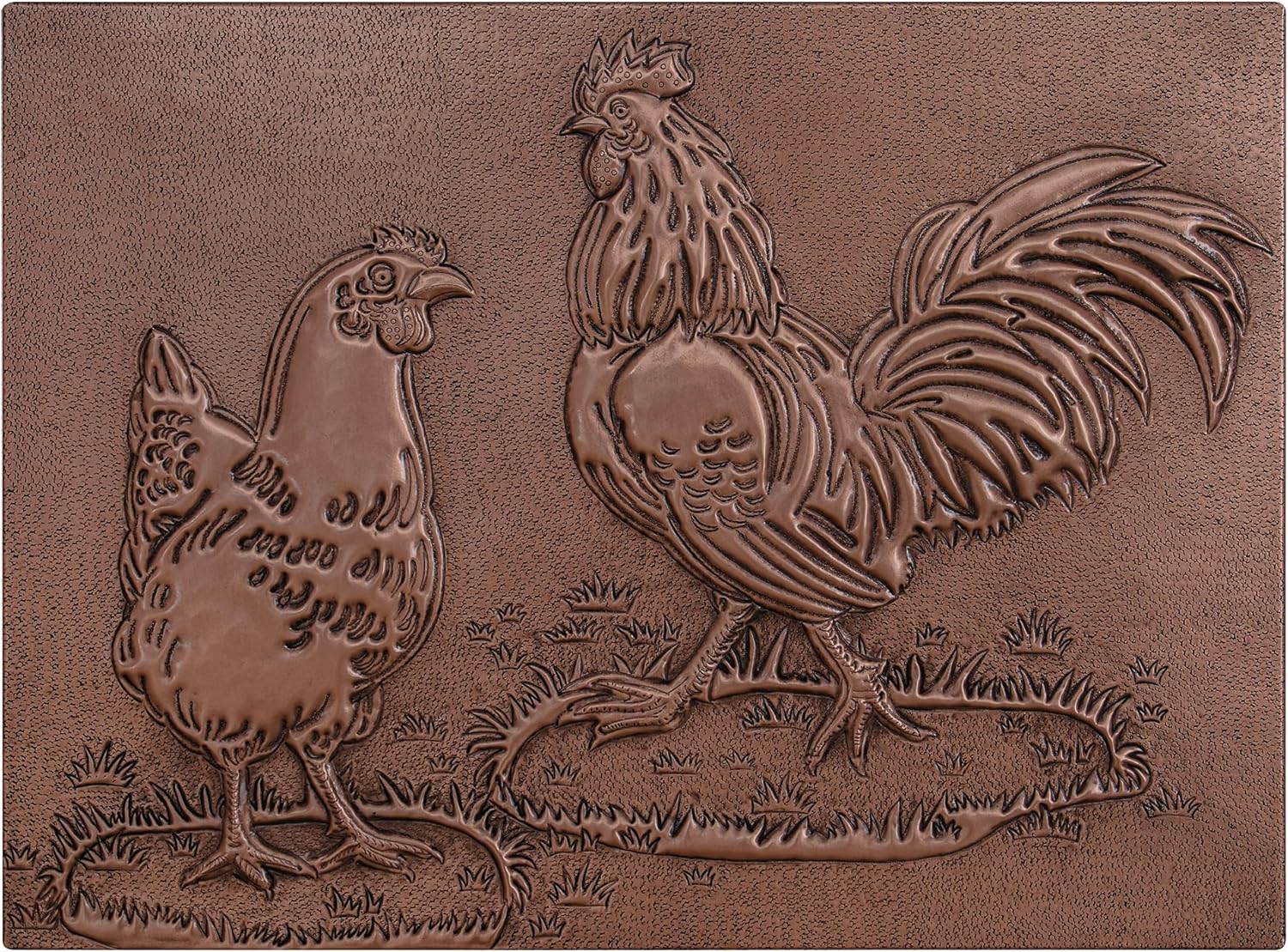 Kitchen Backsplash, Rooster and Chicken Copper Backsplash, Custom Copper Backsplash Panel, Handmade Copper Backsplash Tile, Indoor Outdoor Wall Decor (Gray)