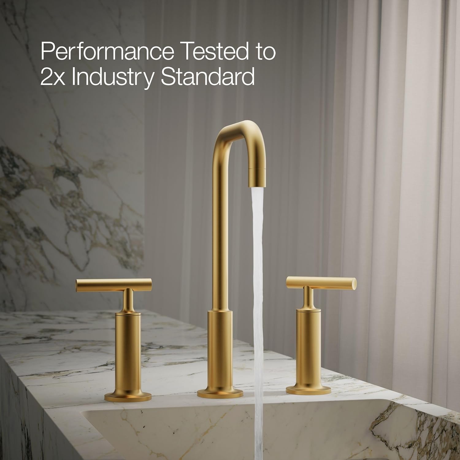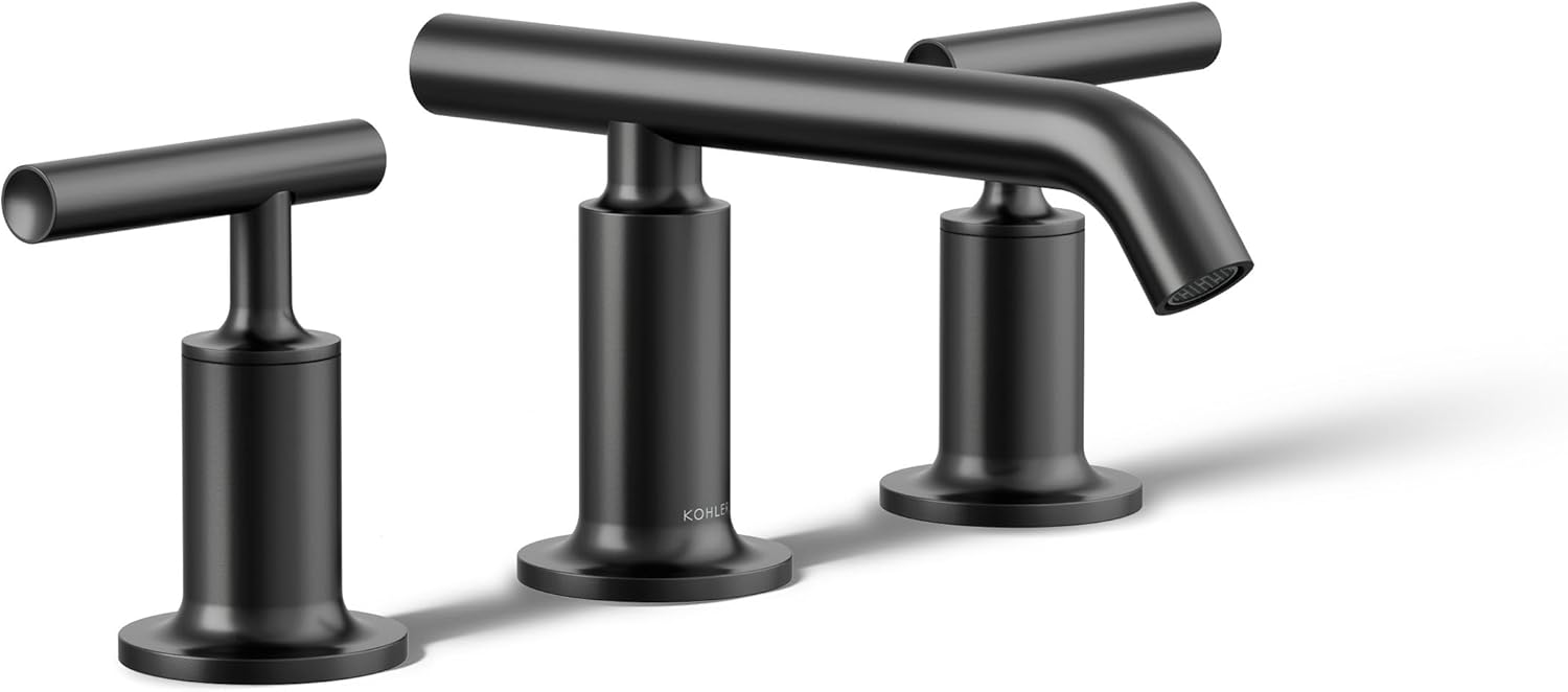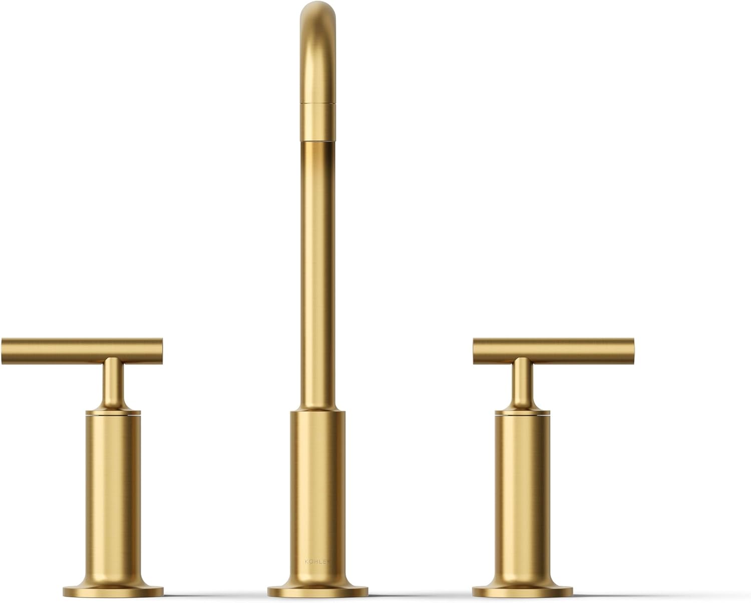 This widespread bathroom faucet by KOHLER® combines architectural forms with sensual design lines, bringing a touch of modern elegance to your space. This bathroom fixture exemplifies the Purist® collection's understated style with a high gooseneck spout plus high lever handles, making it suitable for homeowners undertaking a home renovation or modest decor upgrade. Easy-to-install, leak-free UltraGlide(TM) valves for vanity faucets provide reliable performance plus durability, while the spout’s laminar flow helps conserve water while preventing splashing.