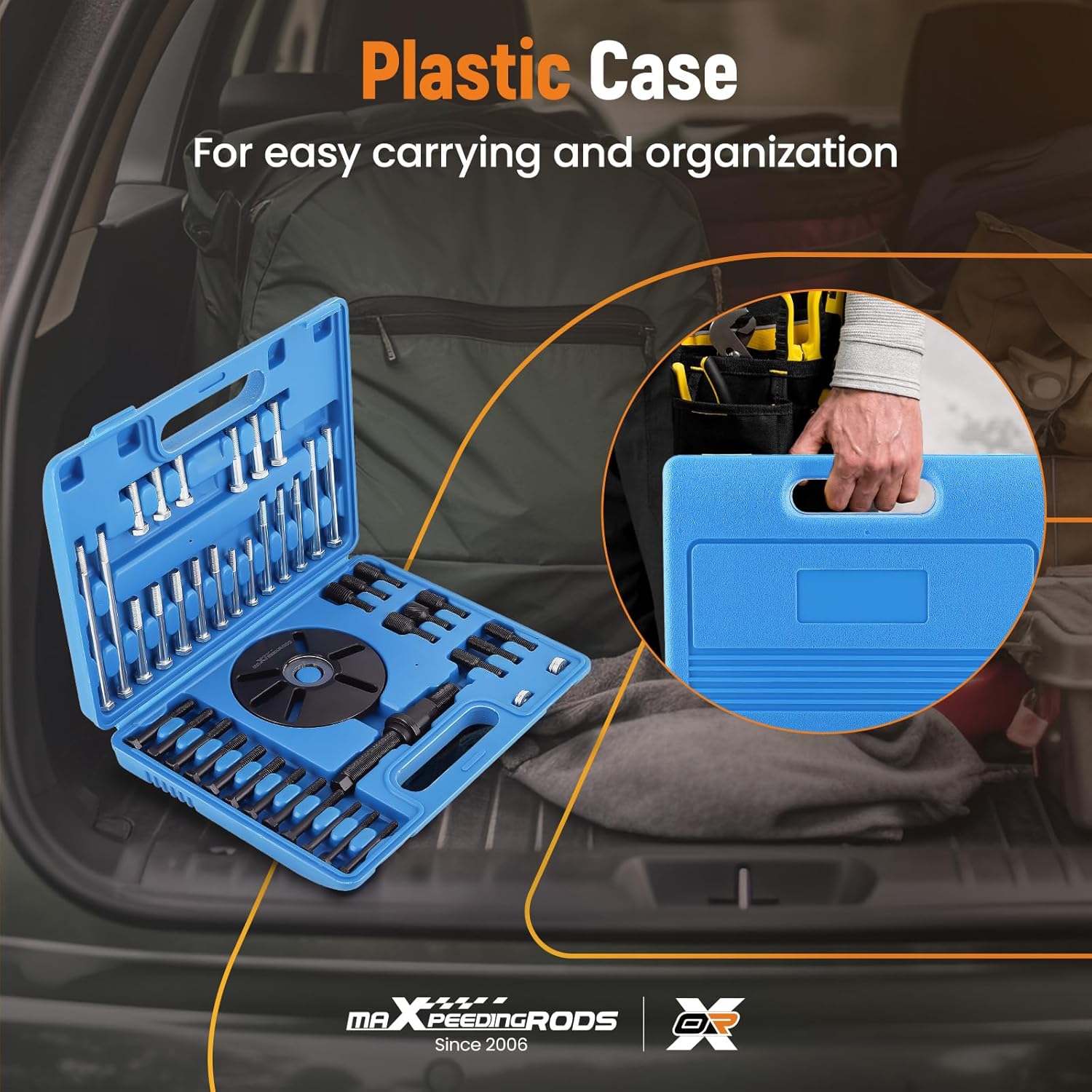 maXpeedingrods Harmonic Balancer Puller Kit, Harmonic Balancer Removal Install Tool Kit, Crankshaft Pulley Puller Removal Tool, Flywheel Gear Steering Wheel Puller Removal Pulling Set, 52 PCS