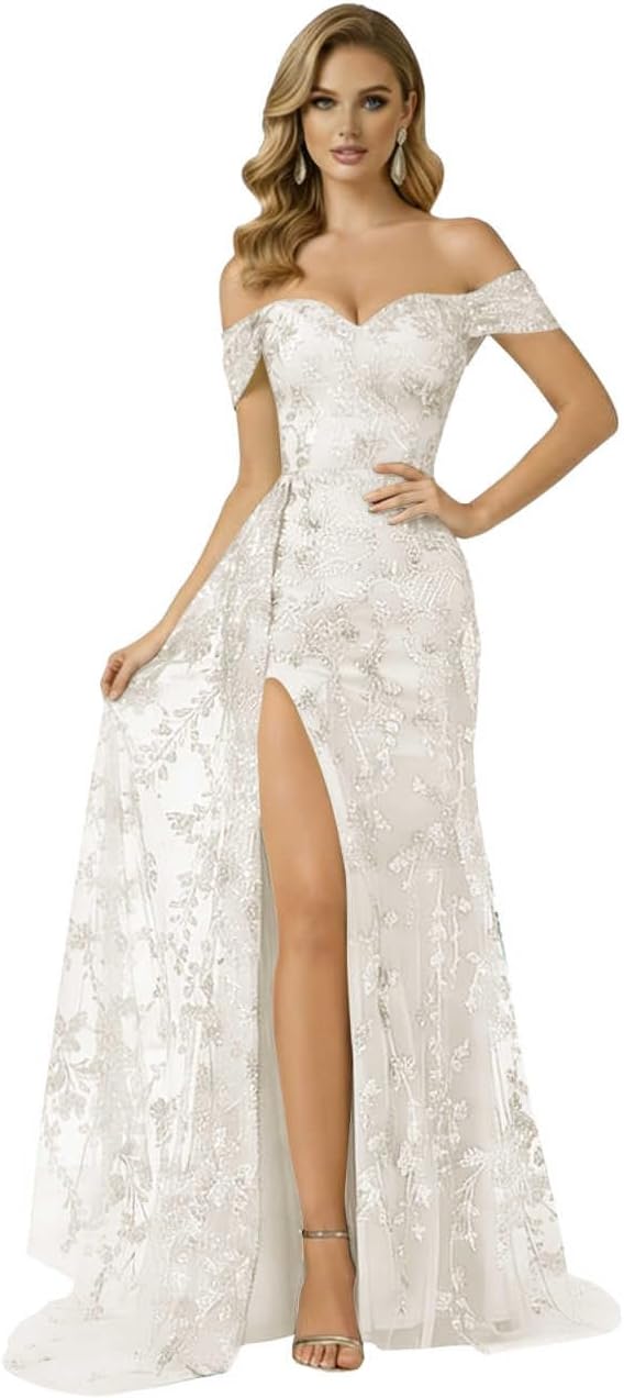 | Embellishment Feature | corset, lace appliques, mermaid, off the shoulder, with slit |