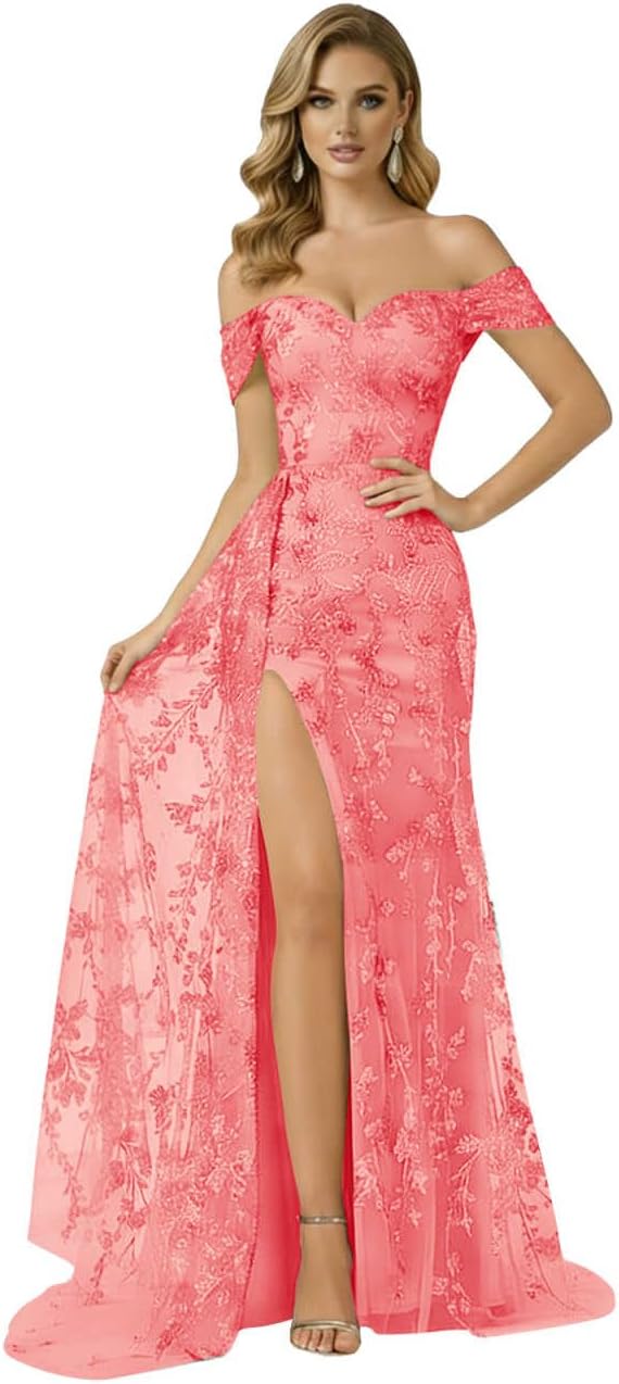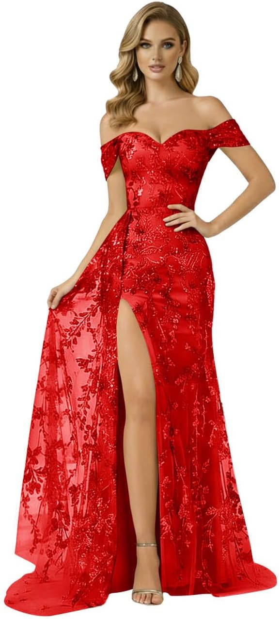 | Occasion Type | Embellished Sparkly Birthday Dress for Girl, Lace Appliques Strapless Formal Dress with Slit, Laces Sweetheart Neck Wedding Guest Dress, Off Shoulder Mermaid Prom Dresses for Teens 2026, Tulle High Slit Evening Ball Gowns with Train |