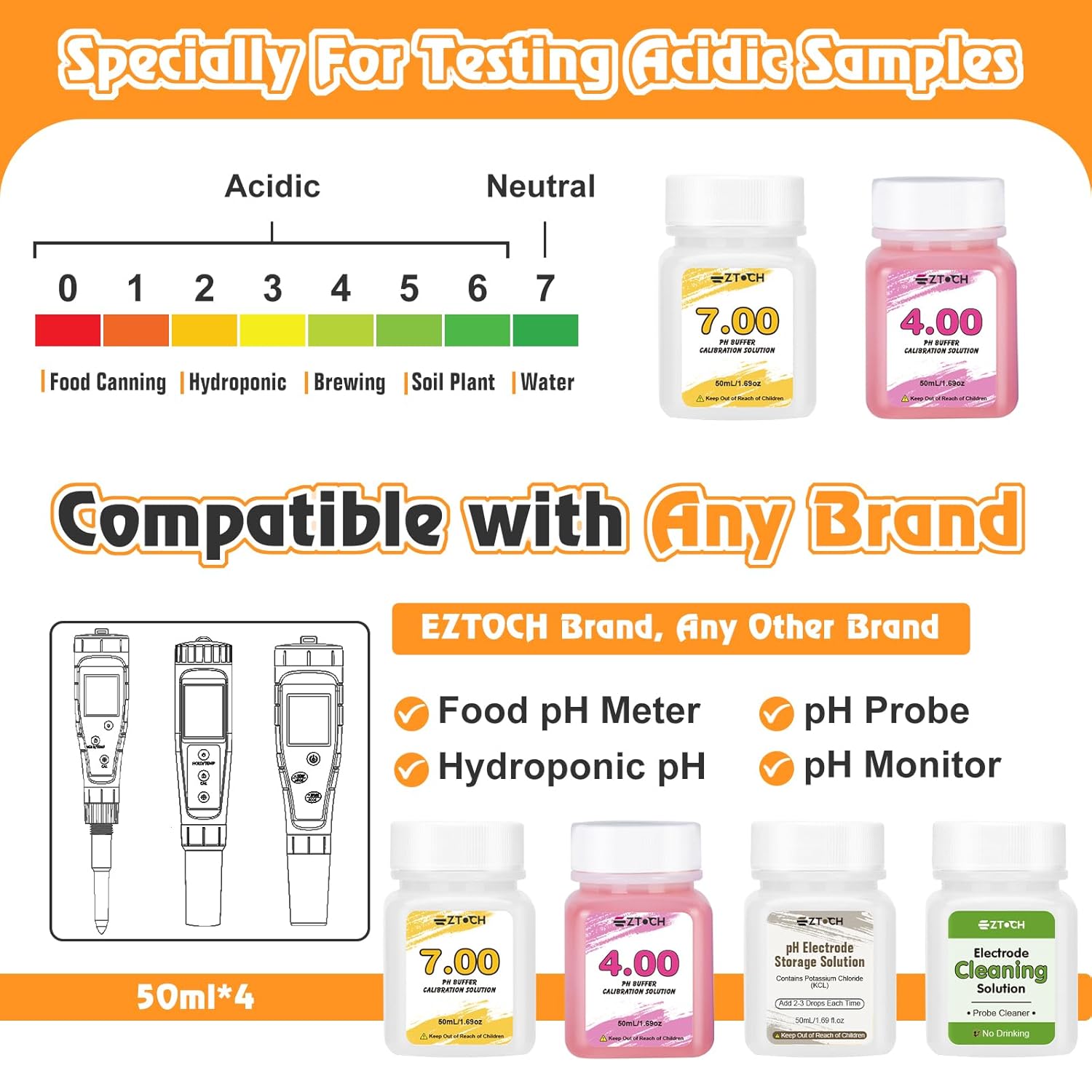 EZTOCH pH Meter for Food with Calibration Solution Electrode Cleaning Solution Electorde KCL Storage Solution for Food Canning, Hydroponic, Brewing, Meat, Sausages, Pickles, Sushi Rice