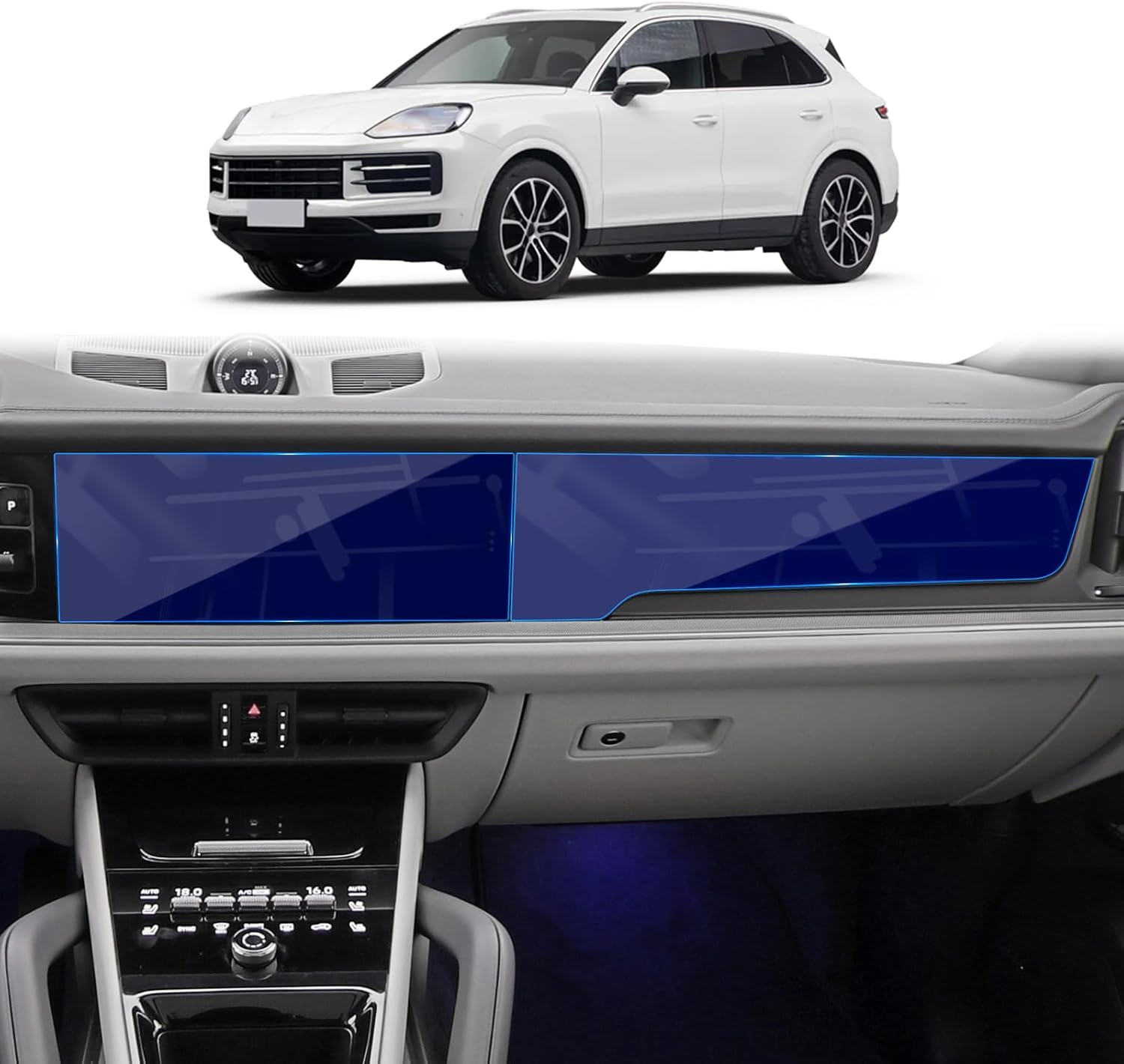 • 【1: 1 Customized,Fit Perfectly】Split screen protector for Cayenne compatible with 2024 2025 2026 Porsche Cayenne S/GTS/Turbo/Coupe/E-Hybrid 12.3 inch navigation center control screens. 1:1 molding based on original car screen data, with edge fit rate up to 99%,you dont even notice that there Cayenne S screen protector installed.