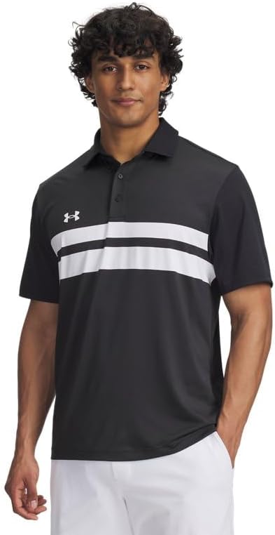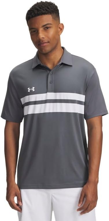 Introducing the Under Armour Men's Drive Team Dual Stripe Polo Shirt, a perfect blend of style, quality, and performance. This versatile polo shirt is a must-have addition to your wardrobe, designed to keep you comfortable and protected, whether you're on the golf course or enjoying a casual day out. One of the key features of this polo shirt is its soft anti-pick, anti-pill fabric. This innovative material is not only extremely lightweight and breathable, but it's specifically designed to resist snagging and pilling, ensuring that your shirt remains smooth and looks great even after prolonged use. Designed with a 4-way stretch material, the Under Armour Men's Drive Team Dual Stripe Polo Shirt offers superior flexibility. This shirt moves better in every direction, conforming to your body's movements without restrictions. This means more comfort and freedom, whether you're swinging a golf club or reaching for something on a top shelf. But that's not all. This polo shirt also features a material that wicks sweat and dries really fast. This means you can stay dry and comfortable, even on the hottest days or during the most intense activities. Protecting your skin from the sun's harmful rays is also a priority. That's why the Under Armour Men's Drive Team Dual Stripe Polo Shirt comes with UPF 50+ protection. This added feature allows you to enjoy the outdoors without worrying about sun damage. The shirt's style is not overlooked. With a 3-button placket with an updated low-profile design, it offers a polished yet relaxed look. The side-vent hem adds an extra touch of style and enhances the overall fit. The Under Armour Men's Drive Team Dual Stripe Polo Shirt perfectly combines quality, performance, and style. Regardless of the activity, this shirt is designed to meet your needs and exceed your expectations. Its advanced features and attention to detail make it a top pick for those who demand the best from their apparel